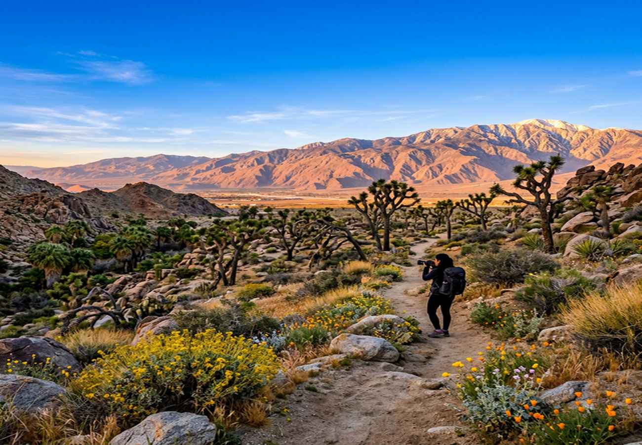 Palm Springs sits at one of the most dramatic natural intersections on the planet β a desert city wedged between the 10,000-foot wall of Mount San Jacinto and the vast sweep of the Coachella Valley. Most visitors come for the pools and mid-century architecture. But travel photographers know the real show is outside the city limits, where ancient canyons, alien rock formations, and wildflower blooms create landscapes that rival anywhere on Earth. Reddit communities β r/PalmSprings, r/EarthPorn, and r/travel β have built a strong consensus on where to point your lens. Here are the five most beautiful spots, straight from those who've actually been there.